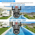 Cu Camera 5K puteti uita de imaginea neclara sau pixelata. Cele tre obiective puternice, fiecare cu o rezolutie de 4MP, va ofera o rezolutie totala de 5K. Nimic nu va scapa din vedere, fie ca este zi sau noapte.