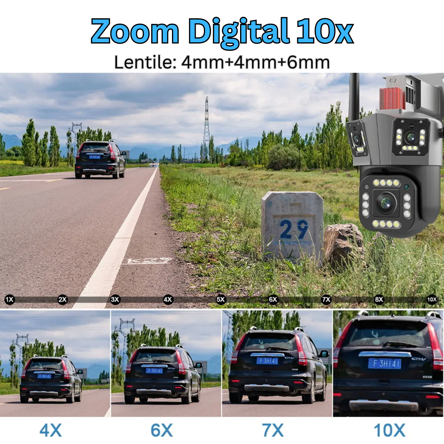 Camera de supraveghere tripla 5K, WIFI, 12MP, 32 GB, PTZ, CCTV, zoom 10x