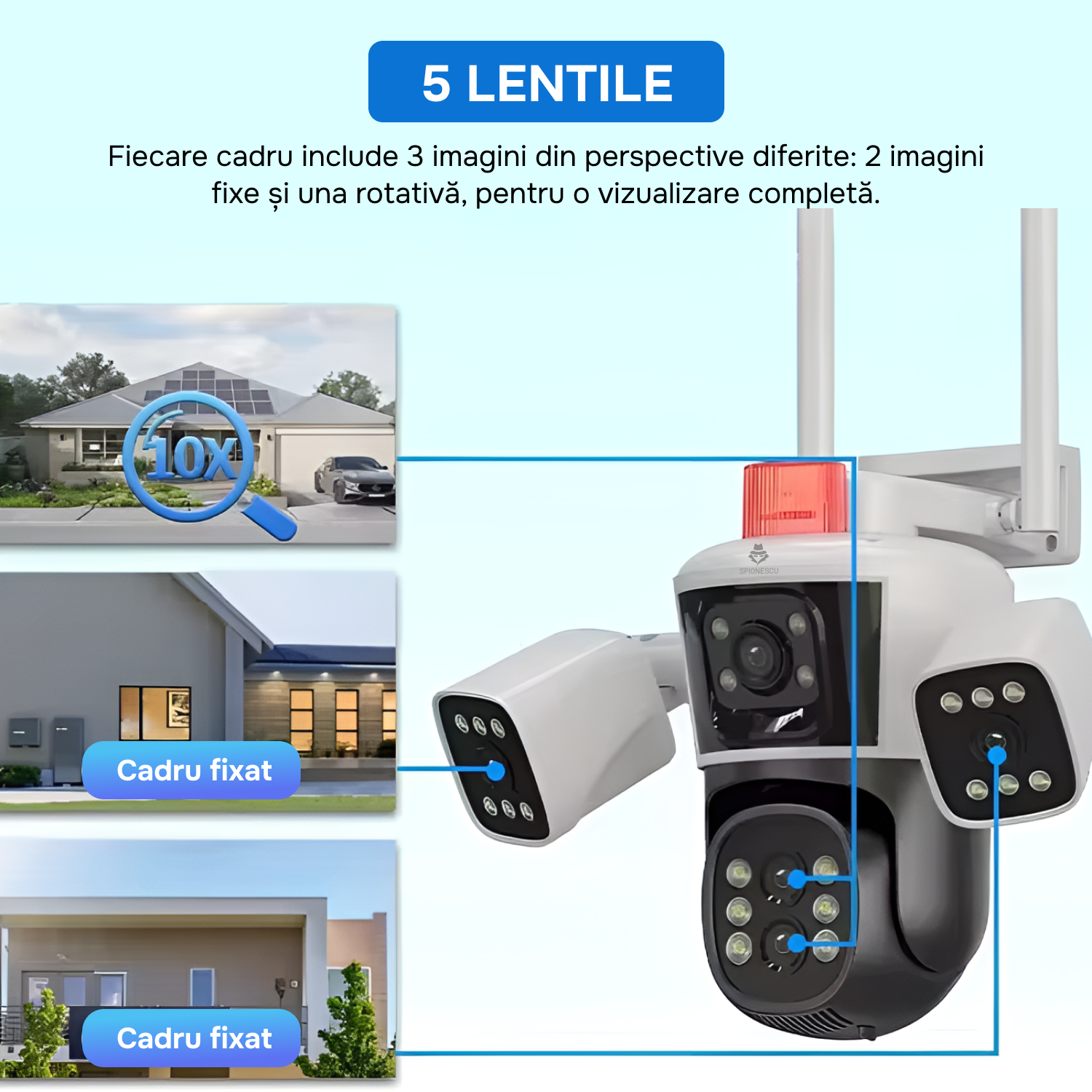 Descopera puterea supravegherii avansate cu camera noastra tripla! Cu rezolutie Ultra HD 4K si un unghi impresionant de 360°, nu vei rata nicio secunda din ceea ce se intampla in jurul tau.