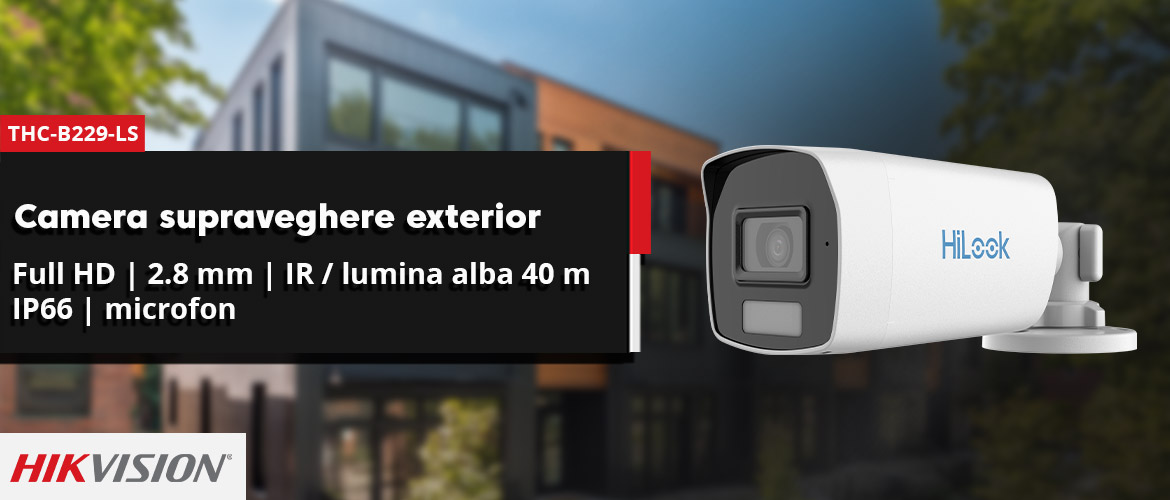 Camera supraveghere exterior Hikvision HiLook Smart Hybrid Light ColorVu THC-B229-LS, 2 MP, 2.8 mm, IR/lumina alba 40 m, microfon
