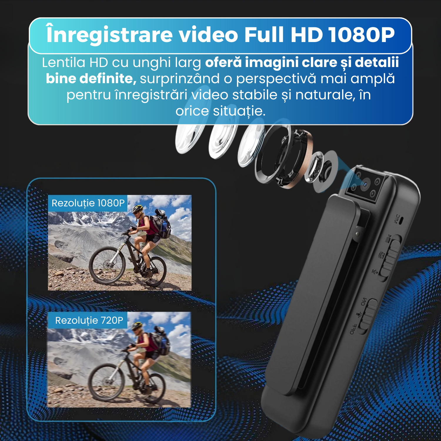 Camera video corporala Full HD este solutia ideala pentru cei care doresc sa surprinda momente importante, activitati zilnice sau situatii speciale intr-un mod discret si eficient. Compacta, usor de purtat si simplu de utilizat, aceasta mini camera portabila imbina calitatea video ridicata cu functionalitati inteligente, oferind libertate totala de miscare si control complet asupra inregistrarilor. Fie ca este folosita pentru activitati outdoor, documentare, deplasari sau uz personal, camera asigura performanta constanta in orice situatie.
