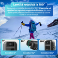 Lentila rotativa ofera posibilitatea de a ajusta rapid unghiul de filmare in functie de situatie. Poti filma in fata, in spate sau din unghiuri diferite, obtinand cadre flexibile fara a muta pozitia camerei.