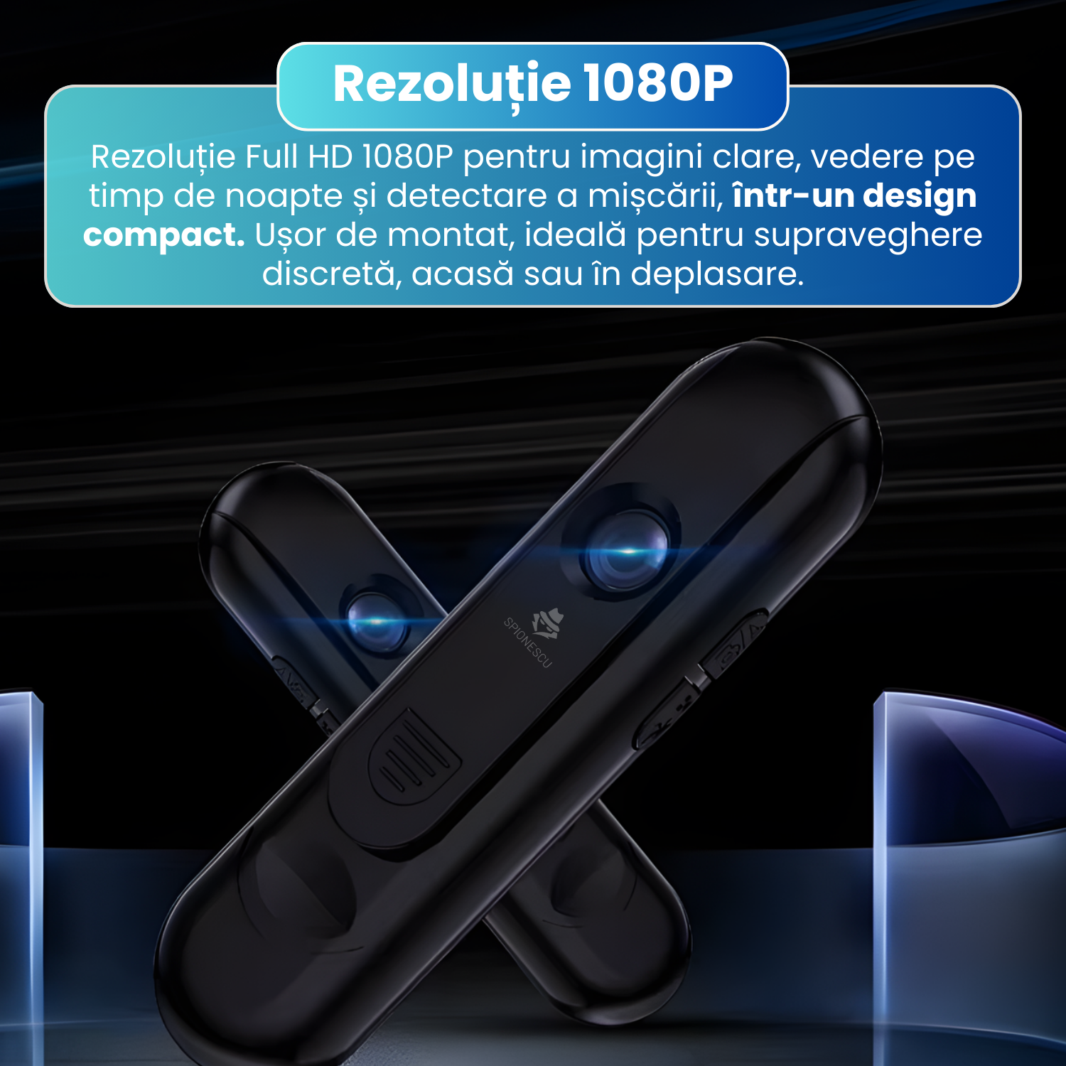 Camera are un design minimalist si dimensiuni reduse, ceea ce o face usor de ascuns si de integrat in orice mediu. Aspectul discret permite utilizarea fara a atrage atentia, fiind potrivita atat pentru uz personal, cat si pentru supraveghere in spatii interioare sau exterioare.