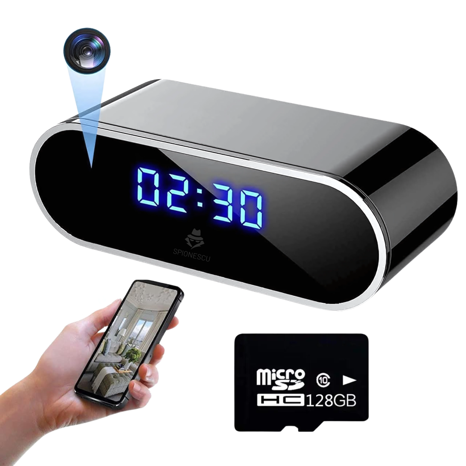 Acest ceas desteptator elegant ascunde o camera spion care ofera supraveghere discreta si eficienta. Cu un design modern si functii avansate, este perfect pentru monitorizarea spatiilor fara a atrage atentia, oferindu-ti control total in orice situatie.
