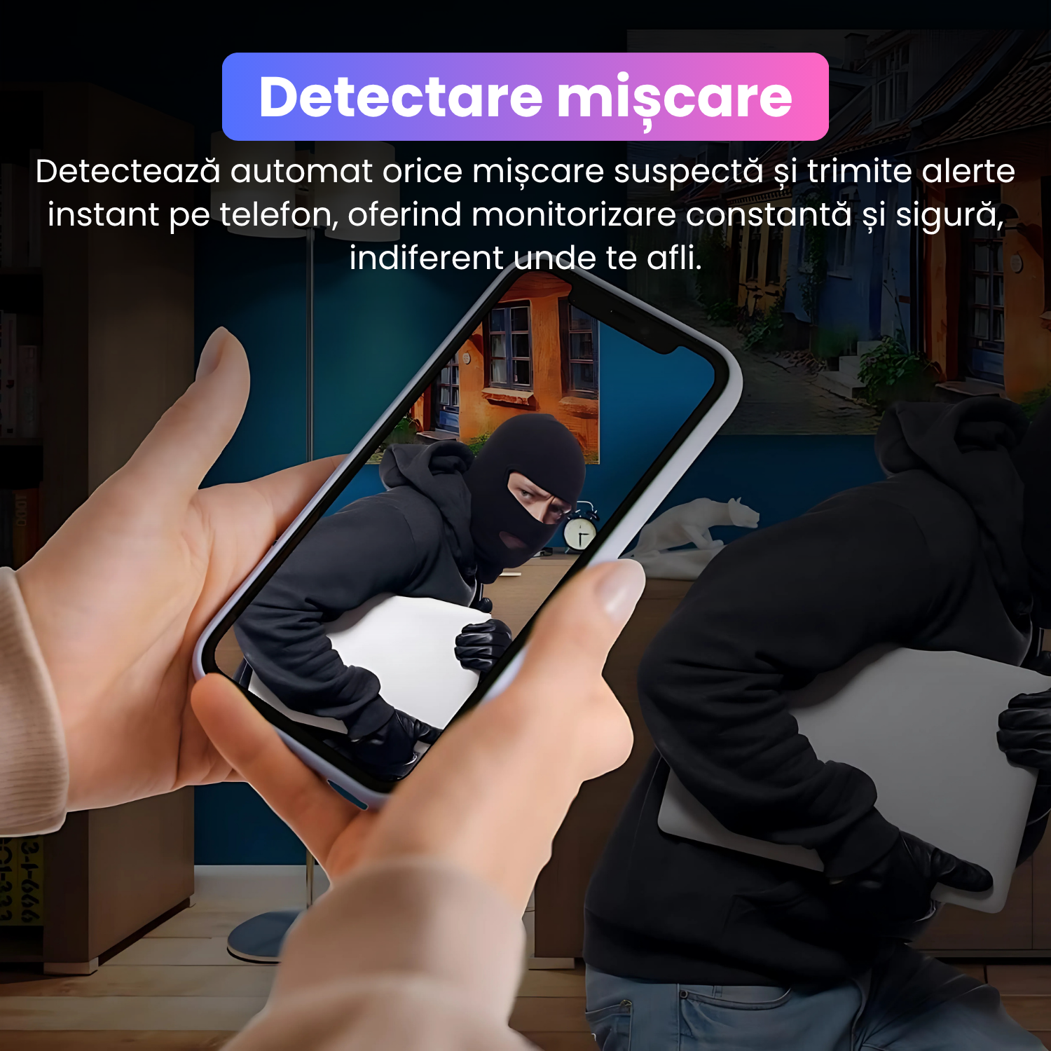 Cu functia de detectare a miscarii, acest dispozitiv monitorizeaza in permanenta mediul inconjurator si reactioneaza automat la orice activitate suspecta. De indata ce detecteaza o miscare, inregistreaza instantaneu si iti trimite alerte direct pe telefonul mobil, astfel incat sa fii informat in timp real, oriunde te-ai afla. Aceasta functie este esentiala pentru supravegherea eficienta a spatiilor, deoarece elimina nevoia de a urmari continuu inregistrarile. Dispozitivul va incepe inregistrarea doar cand este nevoie, economisind astfel spatiu de stocare si asigurandu-te ca surprinzi doar momentele importante. Detectarea miscarii face acest produs ideal pentru protectia locuintei, biroului sau oricarui spatiu de interes, oferindu-ti siguranta si control fara compromisuri. Atentie! Doar pentru iOS!