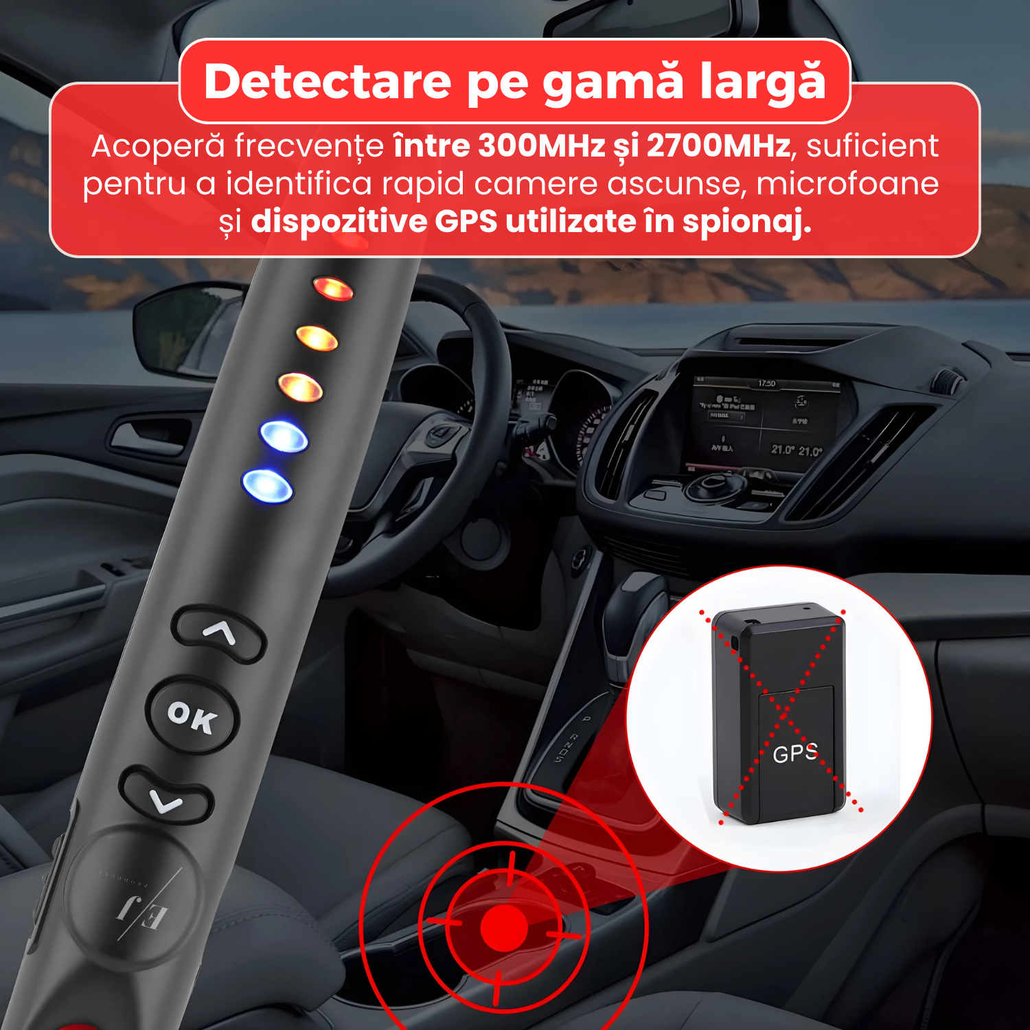 Detectorul multifunctional G718 este un instrument indispensabil pentru cei care doresc sa isi protejeze intimitatea si siguranta in orice spatiu. Conceput pentru a detecta rapid camere ascunse, microfoane spion, localizatoare GPS sau reportofoane, acest dispozitiv acopera o gama larga de frecvente si iti ofera linistea de care ai nevoie, fie ca esti acasa, la birou sau in calatorii.