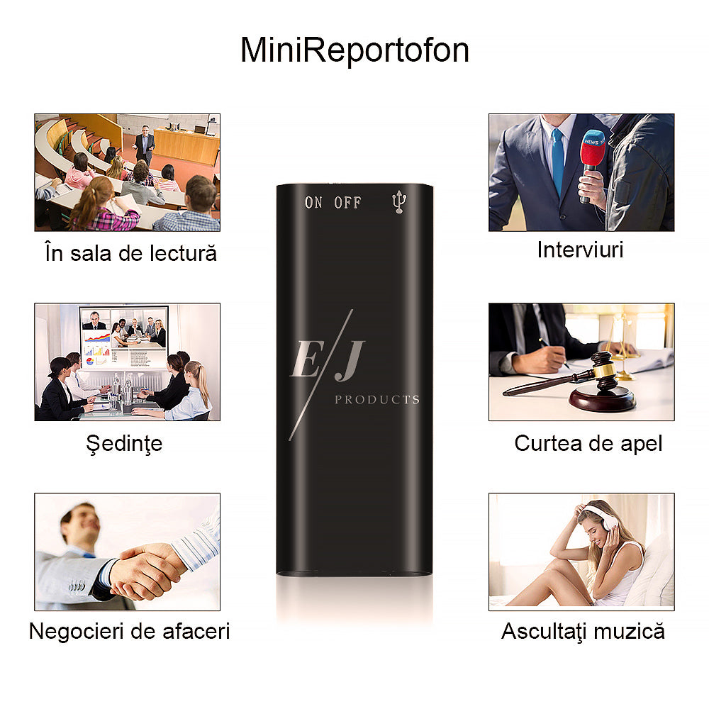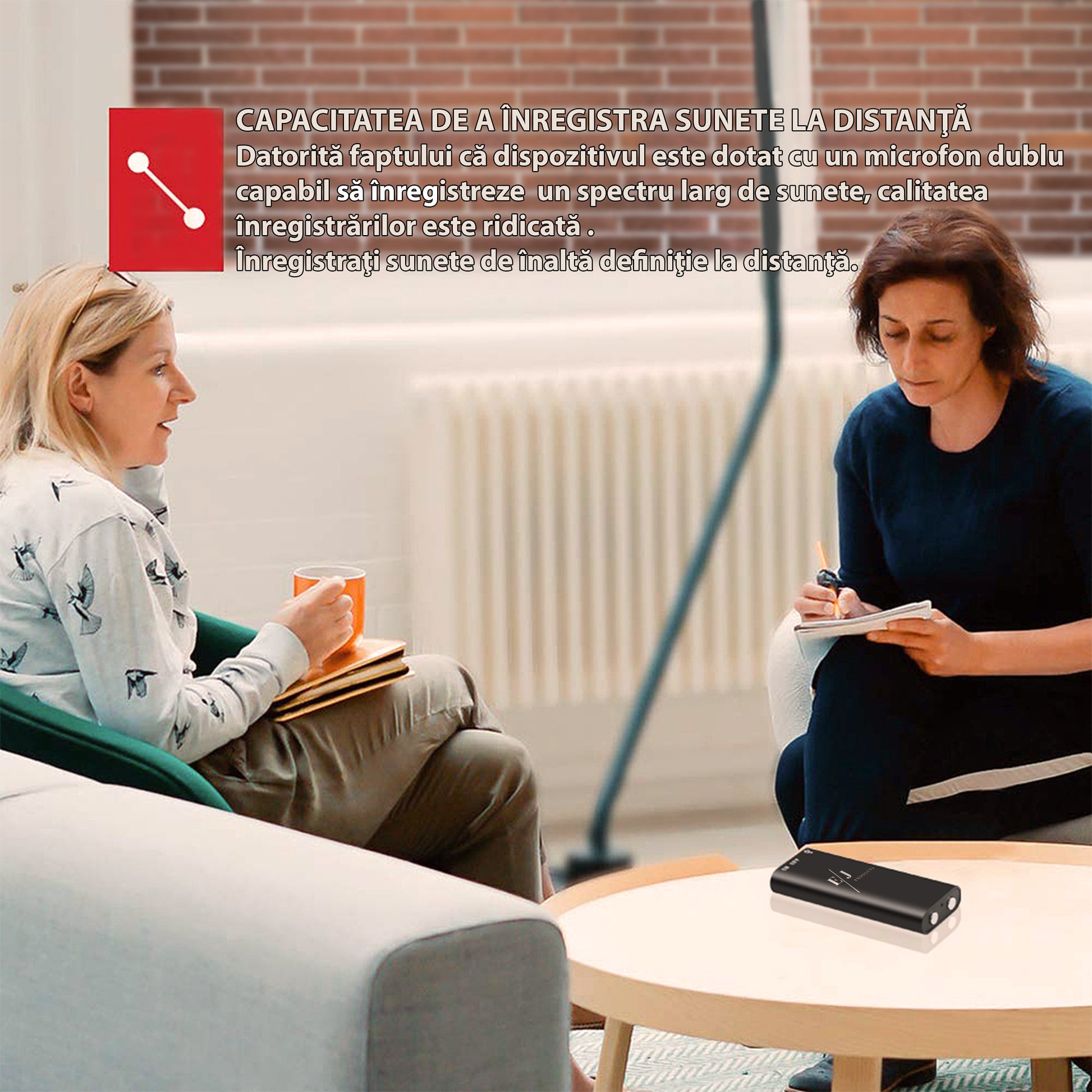Reportofon cu microfon ascuns, 190 ore de stocare, MP3 Player, 16GB - SQ-003