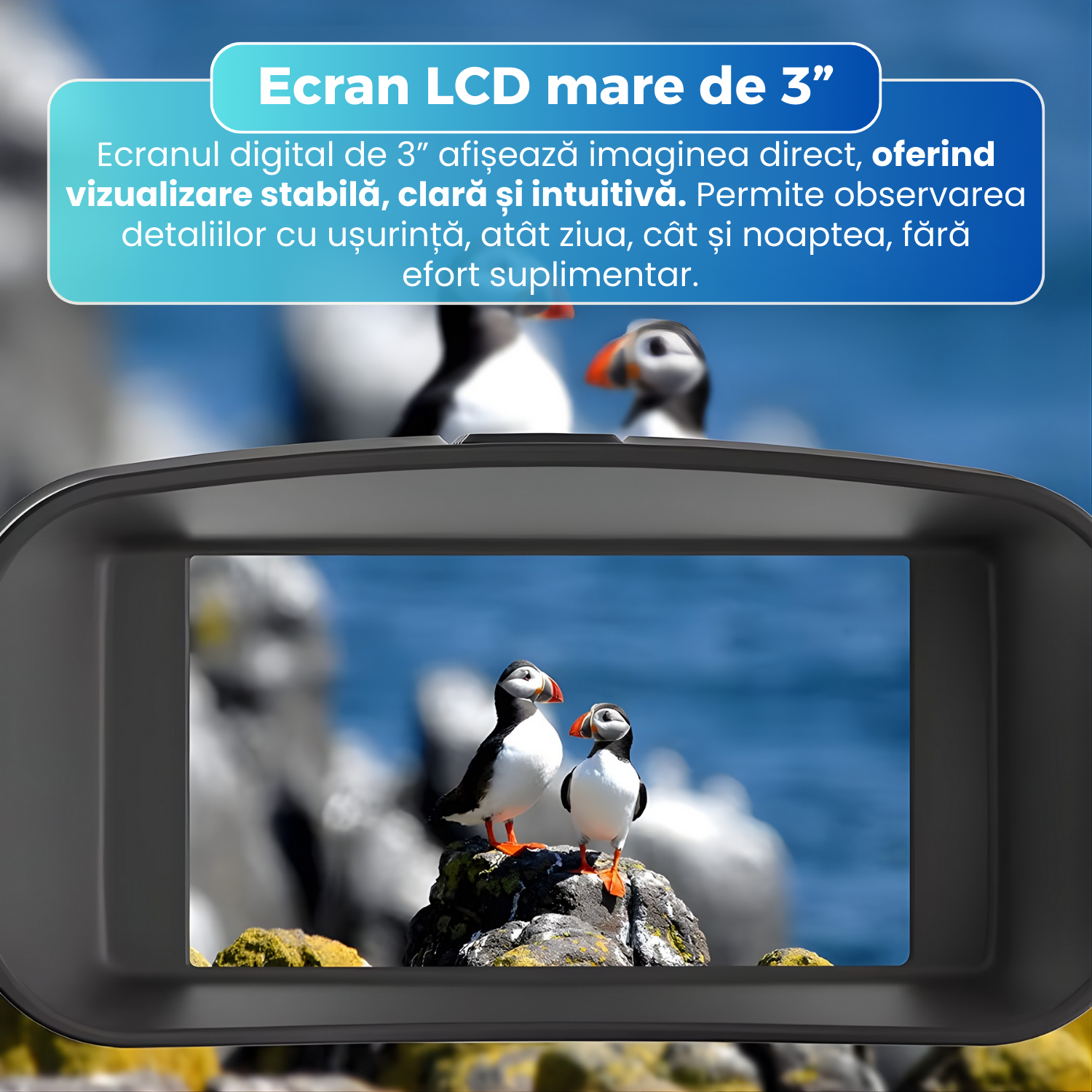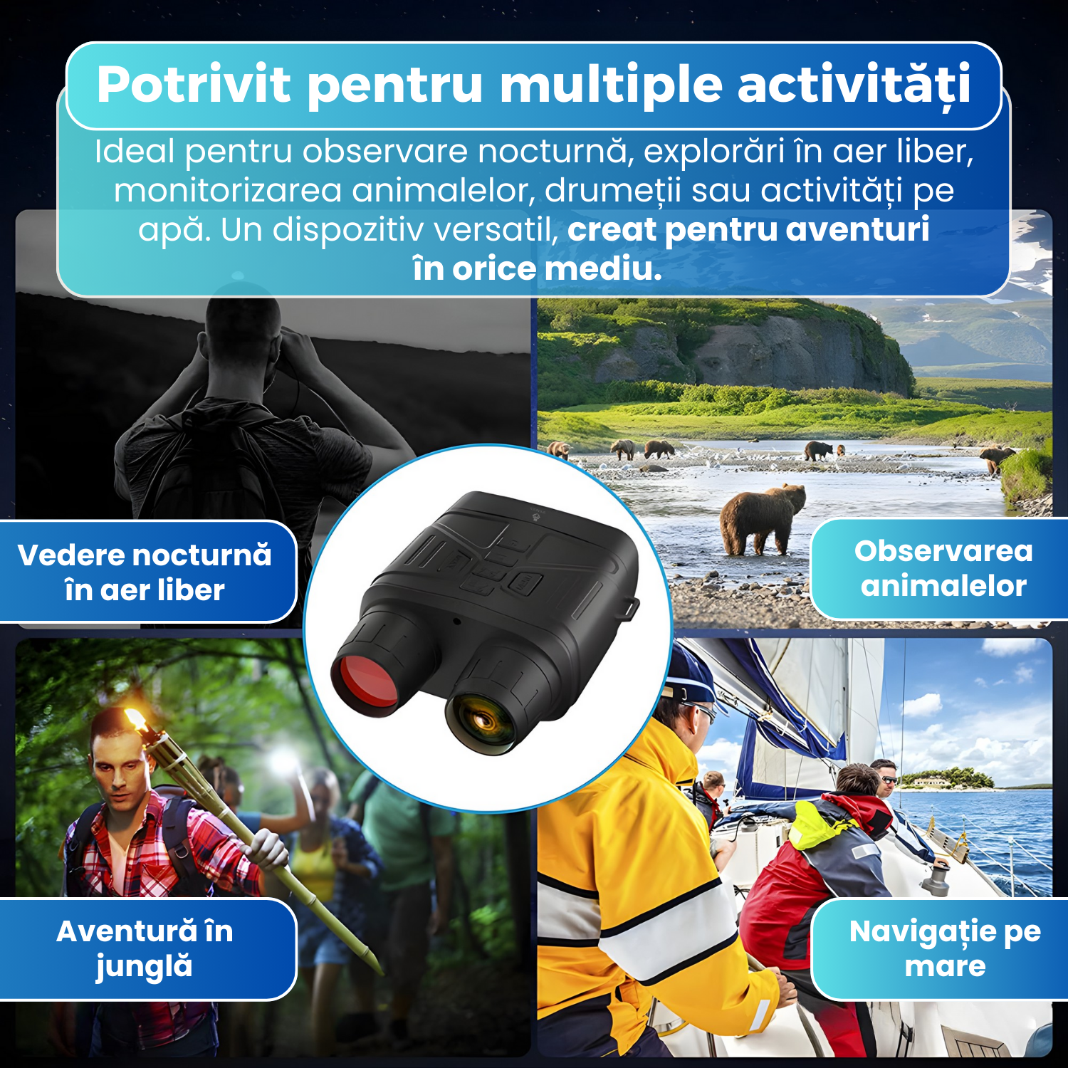 Acest binoclu profesional cu vedere nocturna este conceput pentru utilizatori care au nevoie de observare clara si detaliata in orice conditii de lumina. Cu tehnologie avansata de infrarosu, inregistrare video 4K, fotografii de inalta rezolutie si autonomie extinsa, dispozitivul ofera performanta ridicata atat pe timp de zi, cat si pe timp de noapte. Ideal pentru explorare, supraveghere, observarea animalelor sau activitati outdoor, acest binoclu transforma fiecare experienta intr-una precisa si sigura.