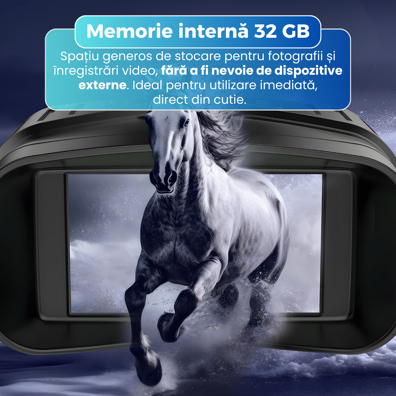 Binoclul dispune de memorie interna de 32 GB, oferind spatiu suficient pentru stocarea fotografiilor si inregistrarilor video. Poate fi utilizat imediat dupa achizitie, fara a necesita accesorii suplimentare.