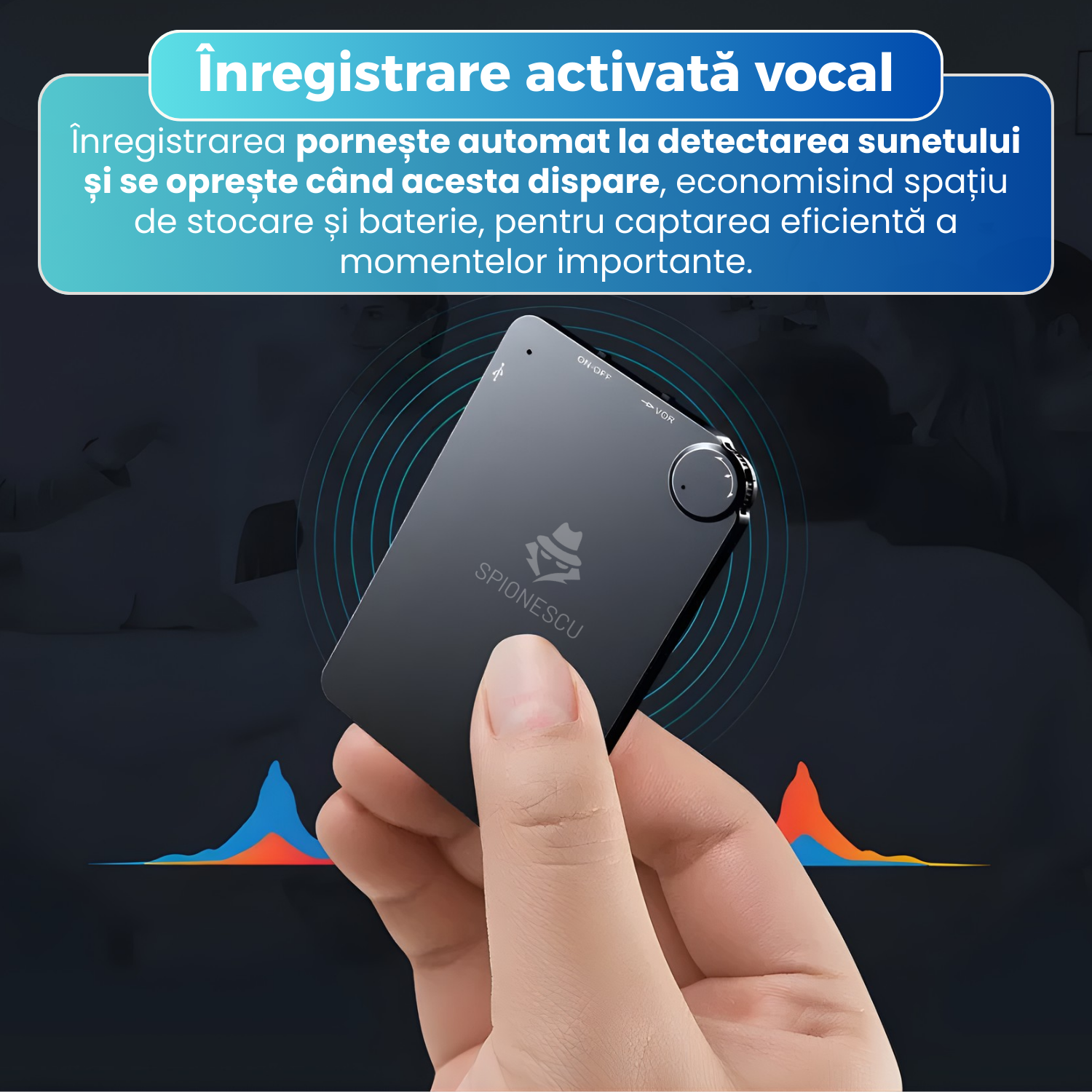 Dispozitivul este echipat cu functie de activare automata la sunet (VOR). Inregistrarea porneste doar atunci cand sunt detectate sunete in proximitate si se opreste automat in lipsa acestora. Astfel, sunt eliminate perioadele inutile de liniste si este optimizat consumul de baterie.