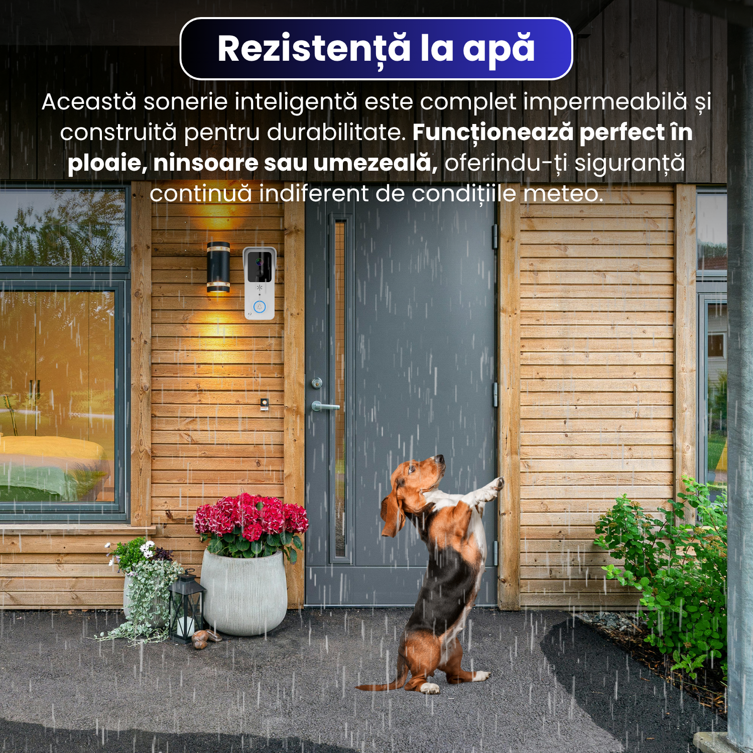 Aceasta sonerie video inteligenta este solutia ideala pentru oricine isi doreste sa imbunatateasca siguranta si confortul la intrarea in locuinta. Cu o camera HD performanta, detectare inteligenta a miscarii, conectivitate WiFi stabila si control complet prin aplicatie, ai mereu control deplin asupra accesului. Designul durabil, montajul simplu si bateria puternica de 5200 mAh transforma acest dispozitiv intr-un partener de incredere pentru protectia ta zilnica. Investeste in siguranta moderna si experimenteaza beneficiile tehnologiei inteligente de ultima generatie.