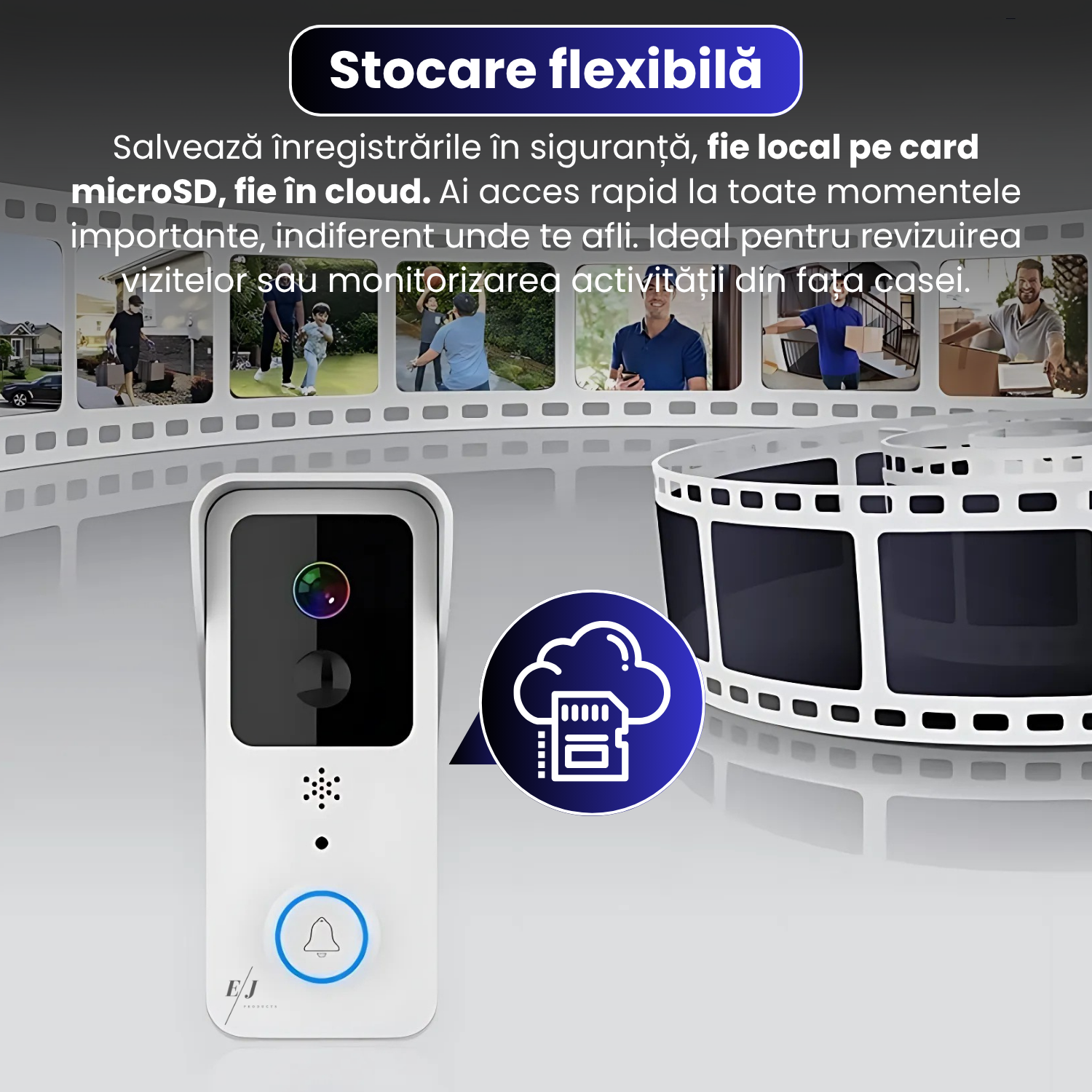 Monitorizare completa si siguranta non-stop - indiferent daca esti la birou, in vacanta sau in alta camera, soneria iti ofera monitorizare constanta si acces instant la fluxul video. Poti revizui inregistrarile oricand si poti fi sigur ca locuinta ta este protejata.