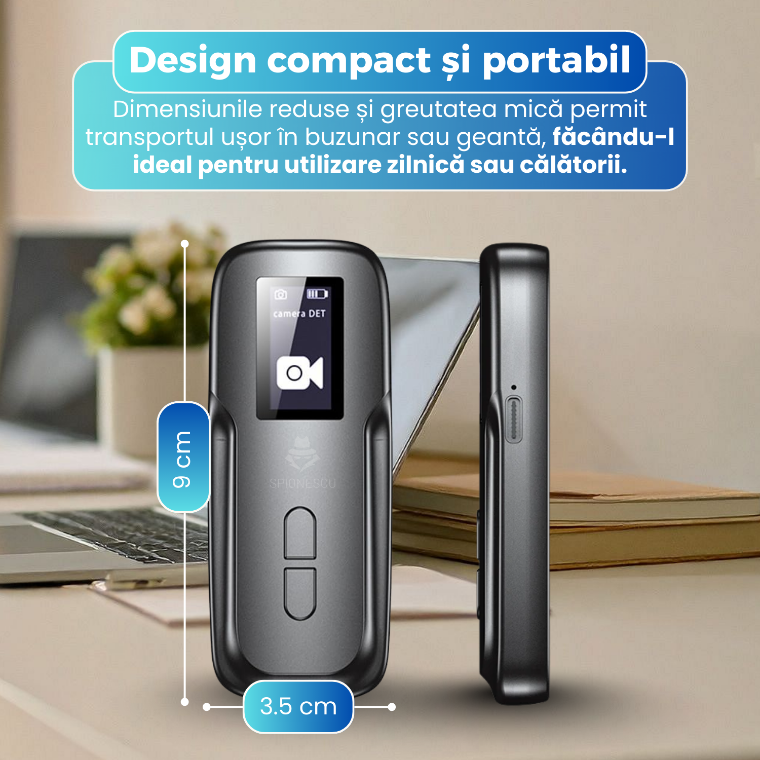 Datorita dimensiunilor reduse si greutatii mici, detectorul poate fi transportat cu usurinta in buzunar sau geanta. Designul compact il face ideal pentru utilizare zilnica, calatorii, verificari rapide in hoteluri, birouri sau alte spatii unde protectia intimitatii este esentiala.