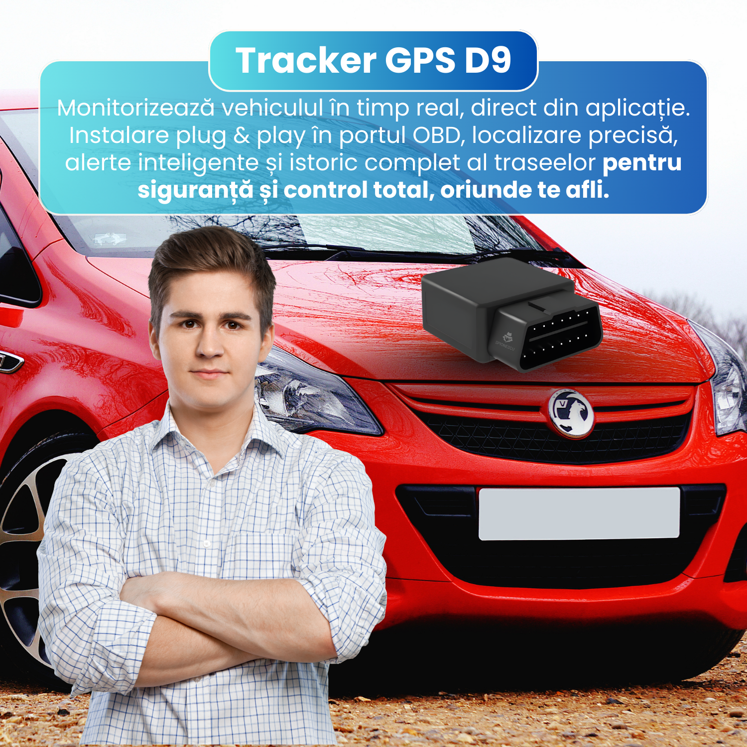 Mini GPS 4G cu interfata OBD, D9, control de la distanta, localizare in timp real, istoric traseu 180 zile, alerte anti-furt, autonomie standby 30 zile, compatibil OBD-II, negru