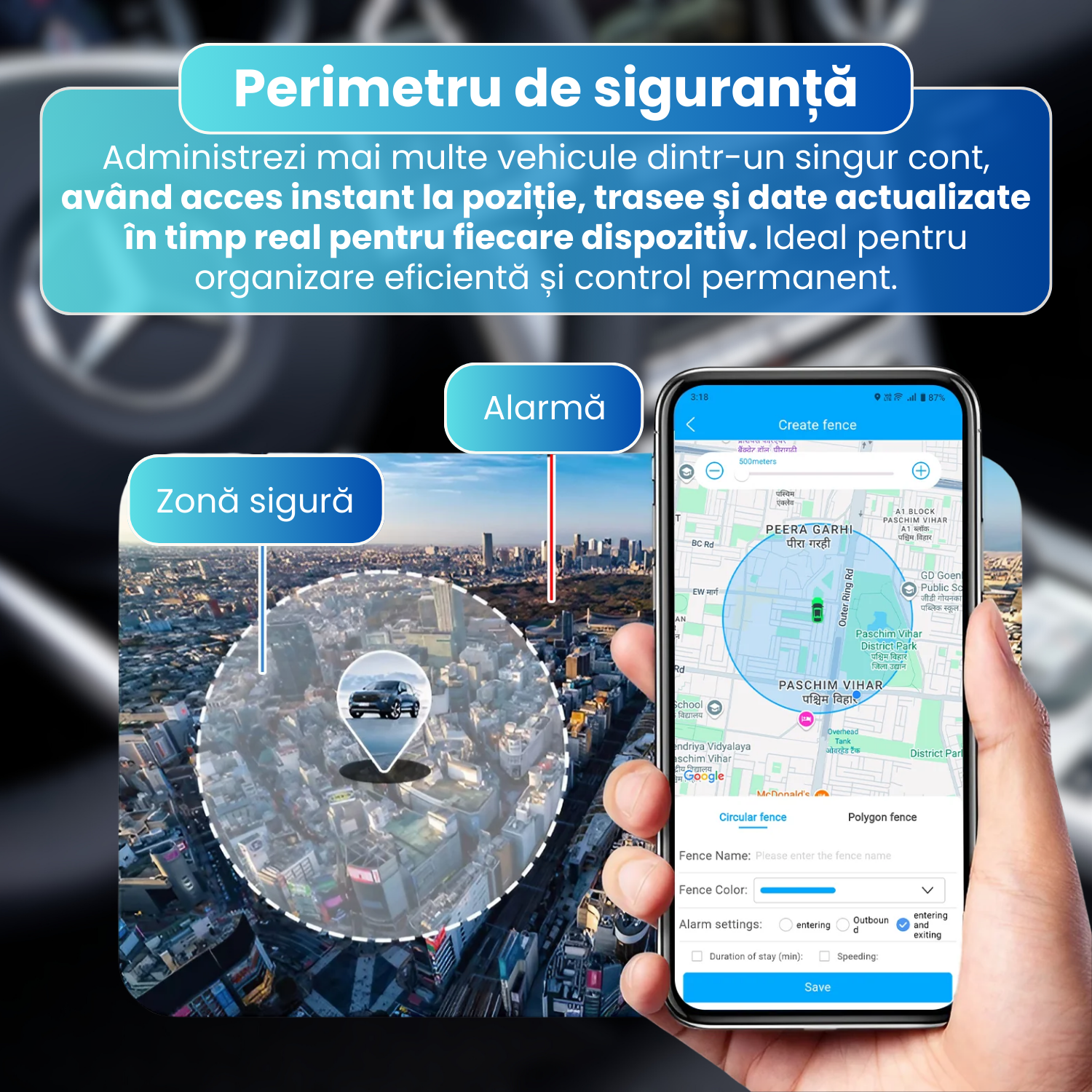 Dispozitivul utilizeaza combinatia dintre localizarea GPS si tehnologia LBS pentru a oferi o monitorizare precisa si fiabila a vehiculului. Aceasta combinatie permite afisarea pozitiei in timp real chiar si in zone unde semnalul GPS este slab sau instabil, asigurand continuitatea datelor si o localizare constanta. Astfel, stii intotdeauna unde se afla vehiculul tau, indiferent de conditiile de semnal.
