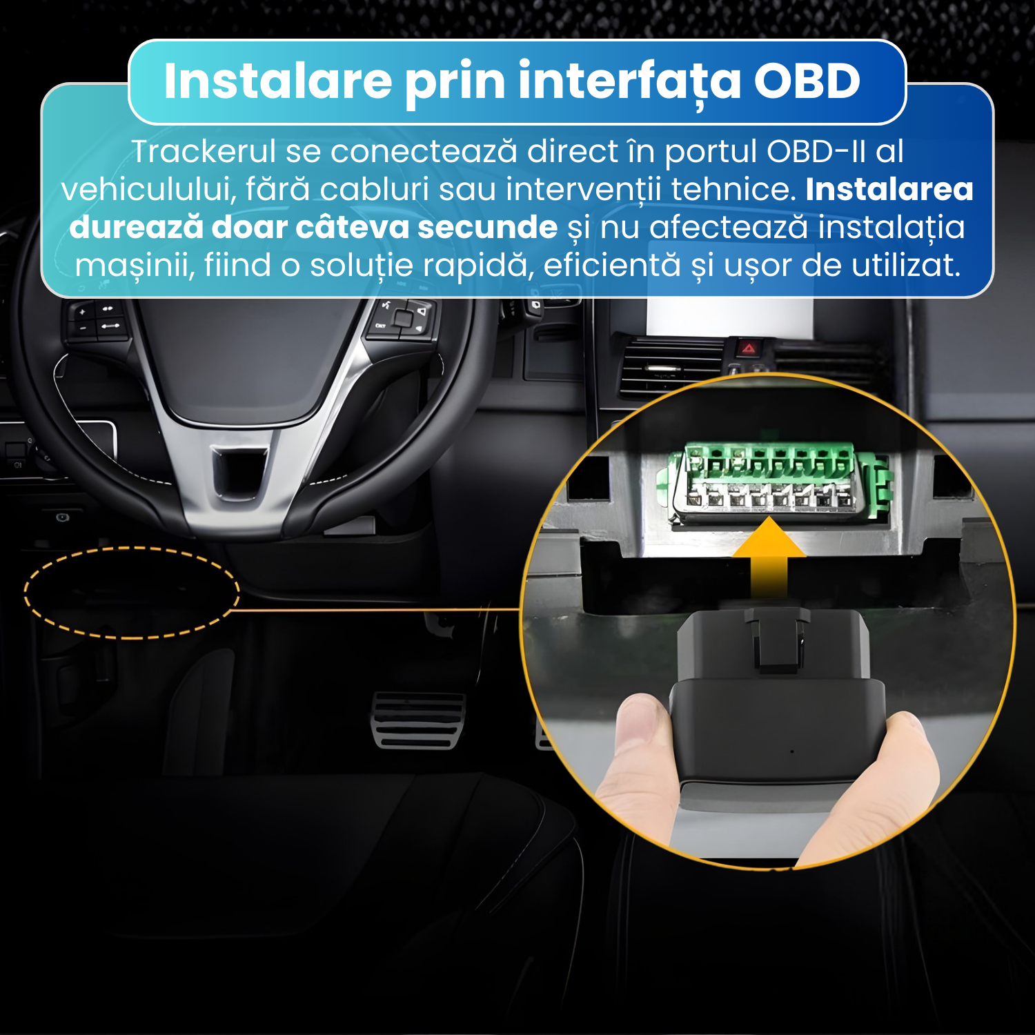 Trackerul se conecteaza direct in portul OBD-II al vehiculului, fara cabluri, fara interventii tehnice si fara a afecta instalatia masinii. Instalarea dureaza doar cateva secunde, fiind ideala pentru utilizatorii care doresc o solutie eficienta si usor de utilizat, fara costuri suplimentare de montaj.