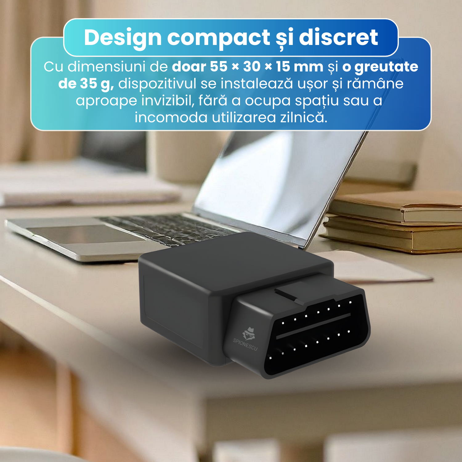 Cu dimensiuni reduse si greutate mica, trackerul se integreaza discret in vehicul, fara a ocupa spatiu si fara a atrage atentia. Designul compact il face potrivit pentru utilizare zilnica, atat pentru masini personale, cat si pentru flote auto.