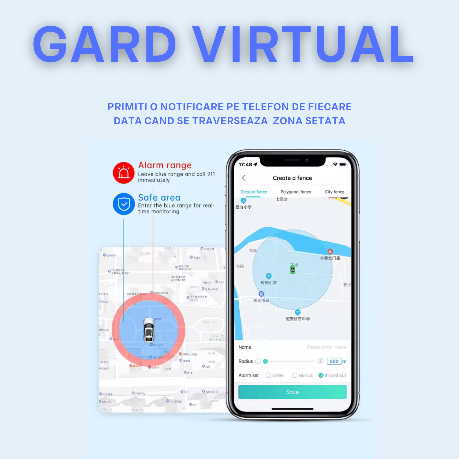 Avertizare Geo-fence: Seteaza un cerc de alarma in jurul locatiei curente a dispozitivului pentru a fi notificat imediat pe telefonul mobil atunci cand vehiculul tau intra in aceasta zona. Afla intotdeauna unde se afla vehiculul tau cu acest sistem inteligent anti-furt.