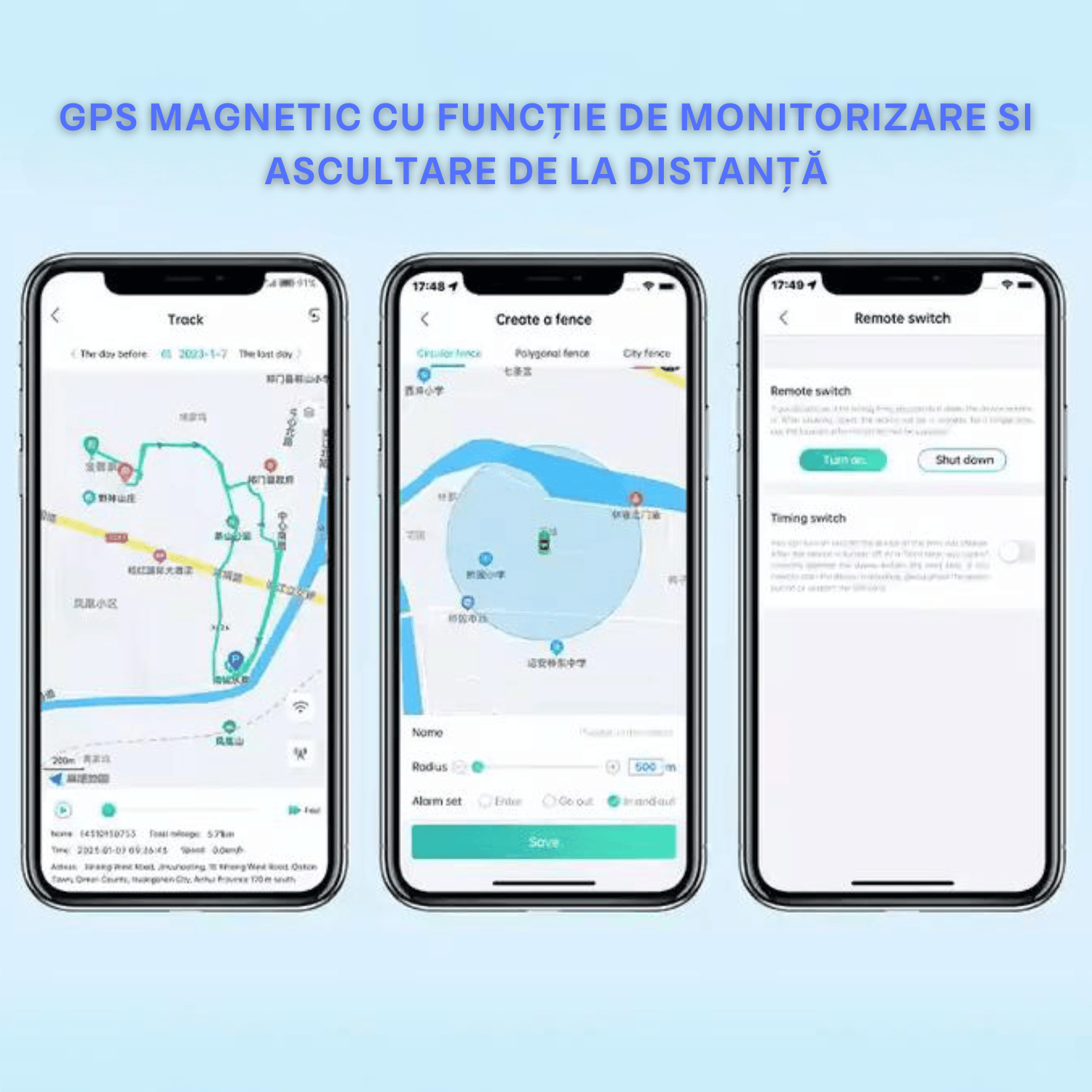 Cu GPs-ul P5, nu doar ca vei urmari locatia, dar vei capta si sunetele inconjuratoare cu claritate HD. Acest dispozitiv de ultima generatie are capacitatea de a inregistra audio de inalta definitie, ce poate fi activata prin voce pentru o utilizare eficienta si discreta. Ideal pentru securitatea personala sau monitorizarea vehiculului, GPS-ul P5 adauga un strat suplimentar de protectie. Toate inregistrarile sunt accesibile si gestionabile prin aplicatia mobila dedicata, oferindu-ti control complet si acces rapid la dovezi audio ori de cate ori ai nevoie. Pune-i la treaba functiile avansate de inregistrare audio ale lui P5 si asigura-te ca nu pierzi niciun detaliu important.