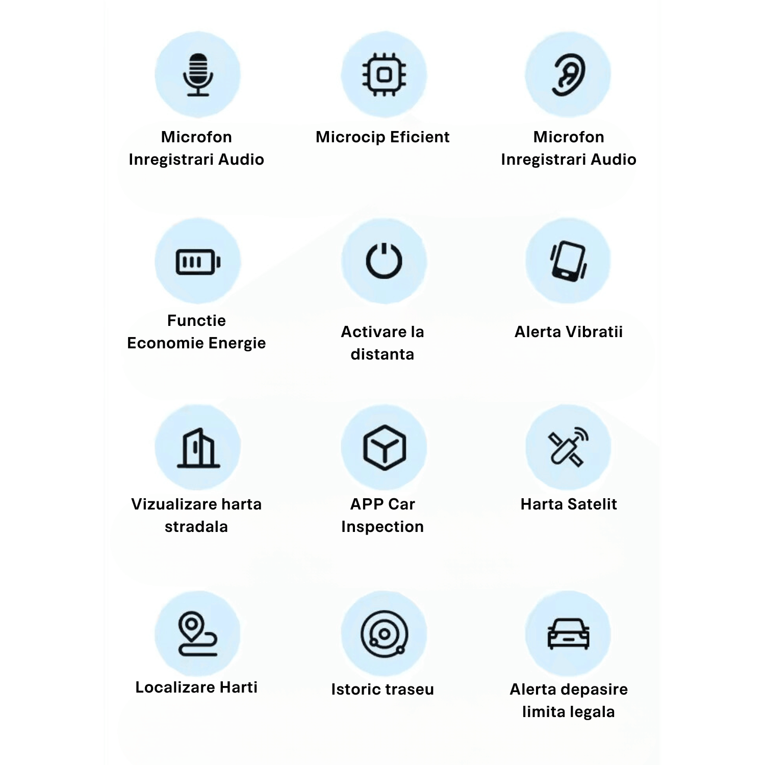 Functii Avansate: Inregistrare audio, detectie vibratii, replay traseu, gard virtual Geofence