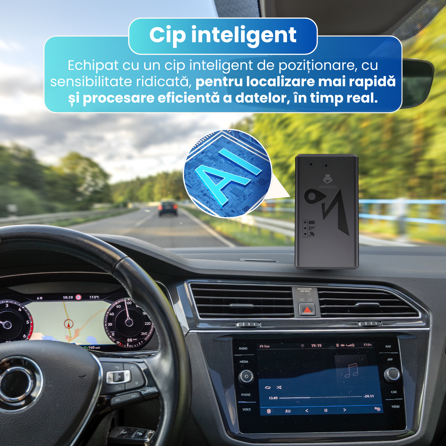 Echipat cu un cip inteligent de inalta sensibilitate, dispozitivul asigura o procesare rapida a datelor si o localizare stabila, chiar si in zone cu semnal mai slab. Aceasta tehnologie contribuie la acuratetea pozitionarii si la functionarea constanta a trackerului.
