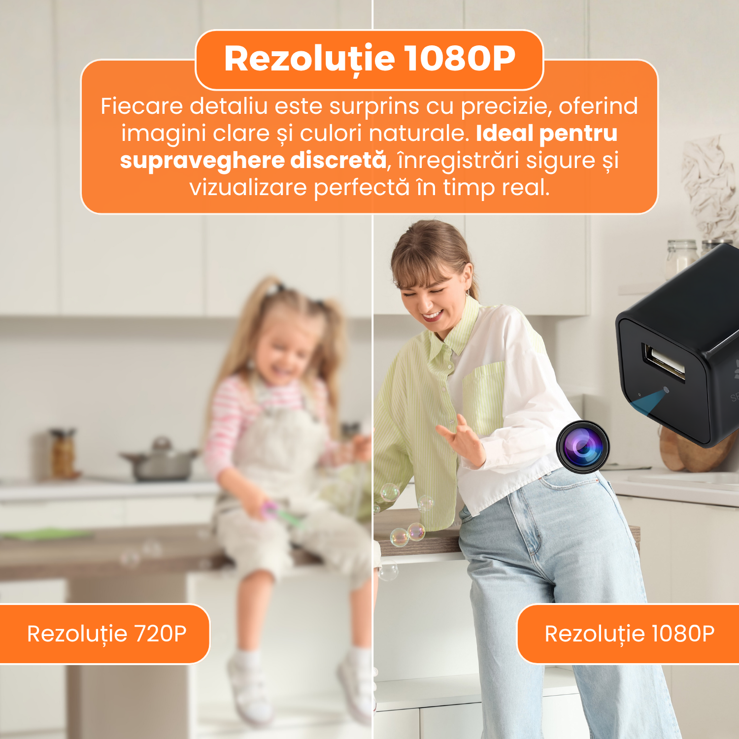 Descopera un dispozitiv care combina perfect functionalitatea zilnica cu tehnologia de supraveghere moderna. Acest incarcator USB cu camera ascunsa este solutia ideala pentru monitorizare discreta, inregistrare continua si protectie inteligenta a spatiului tau. Cu rezolutie Full HD 1080P, detectie automata a miscarii si conectivitate WiFi, ofera imagini clare si acces de la distanta prin aplicatie mobila. Designul minimalist face ca dispozitivul sa arate exact ca un incarcator obisnuit, pastrand in acelasi timp performanta unei camere profesionale.