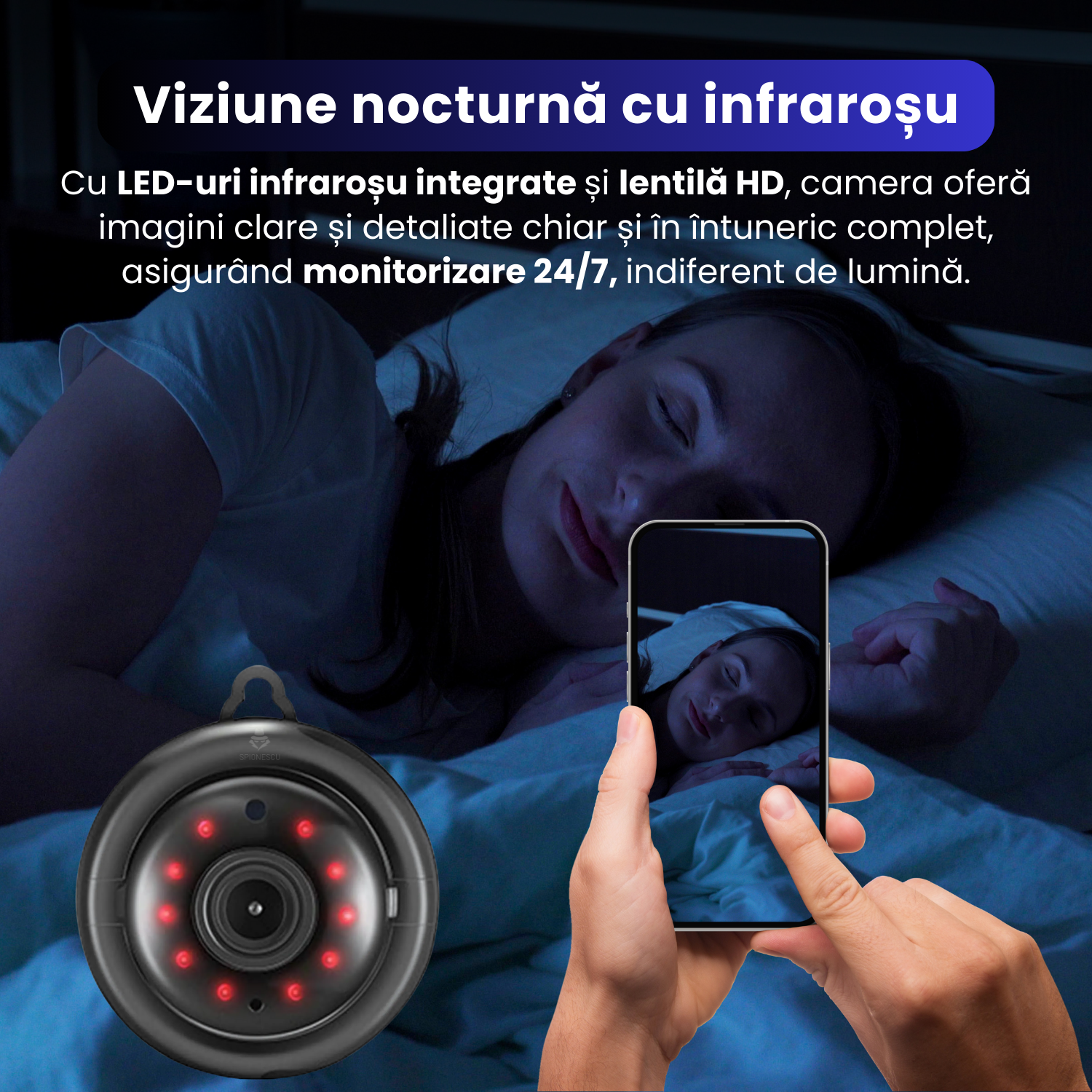 Descopera o solutie eficienta si discreta pentru supraveghere – mini camera HD cu infrarosu si conectivitate WiFi. Usor de instalat, cu vizibilitate clara zi si noapte, detectare miscare si acces direct de pe telefon. Cumpara acum si asigura-ti linistea, oriunde te-ai afla!