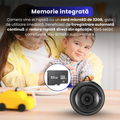 Stocare sigura pe card microSD – inregistrarile sunt salvate direct pe cardul de memorie, fara costuri suplimentare sau servicii cloud obligatorii.