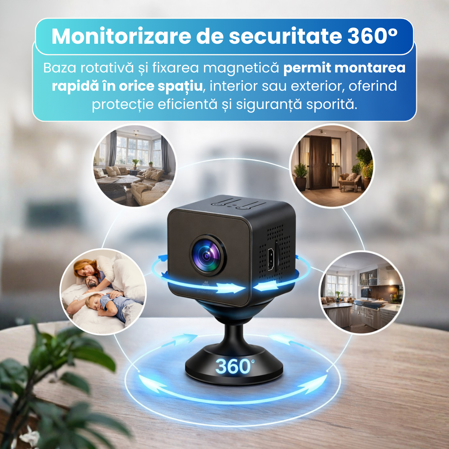 Monitorizare 360° cu baza rotativa