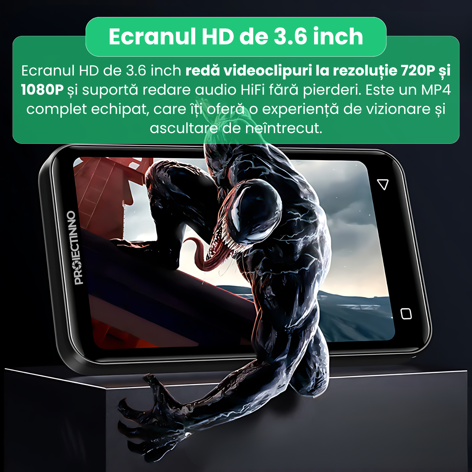 Cu dimensiuni compacte si margini rotunjite, acest player este confortabil de tinut in mana si incape usor in buzunar sau in geanta. Carcasa rezistenta protejeaza componentele interne, iar finisajul elegant il face potrivit atat pentru utilizare casual, cat si pentru situatii mai profesionale.