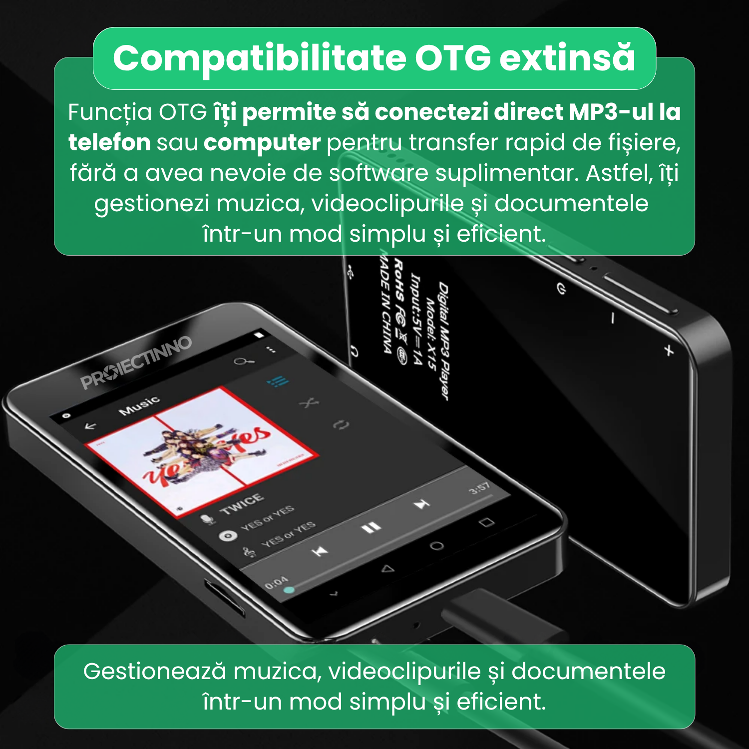 Acest dispozitiv poate reda fisiere audio si video, poate fi folosit ca radio FM, ca cititor e-book sau ca reportofon. Functia OTG iti permite sa conectezi direct alte dispozitive sau stick-uri USB, marind posibilitatile de transfer si stocare.