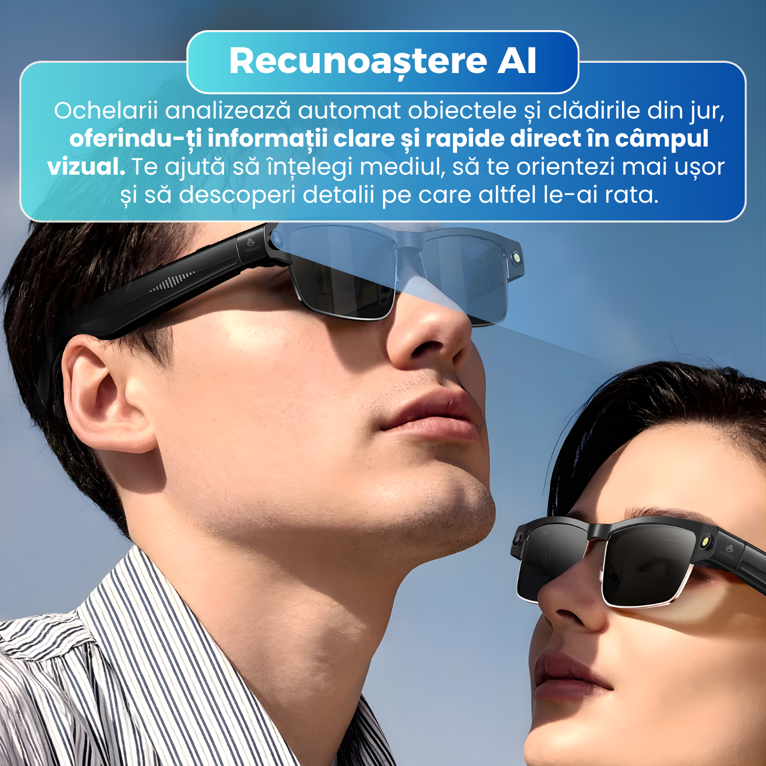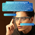 Asistentul vocal integrat transforma ochelarii intr-un instrument inteligent, gata sa raspunda la intrebari in orice moment. Poti solicita informatii despre vreme, trasee, obiecte, locatii sau curiozitati, iar ochelarii iti ofera raspunsul imediat, fara a fi nevoie sa atingi telefonul. Functia de recunoastere AI identifica obiecte, cladiri sau repere din jur, analizand scena in timp real si afisand informatii utile. Aceasta tehnologie nu doar imbunatateste experienta zilnica, dar adauga si un strat de asistenta augmentata, util pentru calatorii, explorare urbana, orientare sau activitati profesionale. Este ca si cum ai avea un ghid inteligent mereu cu tine.