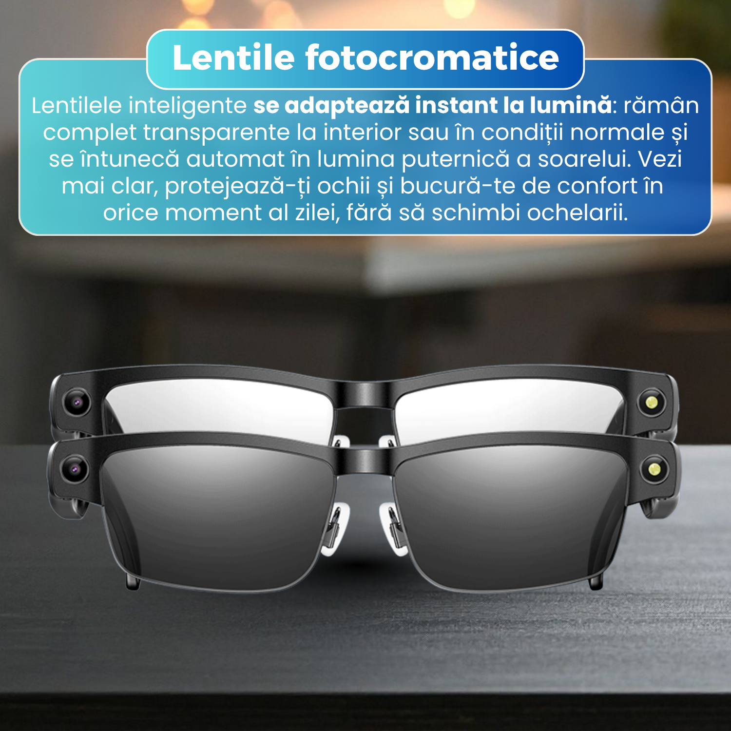 Ochelari inteligenti cu camera, L802, 8MP, video 1200P, asistent vocal AI, redare muzica, apeluri Bluetooth, difuzoare deschise, baterie 270 mAh, lentile fotocromatice,