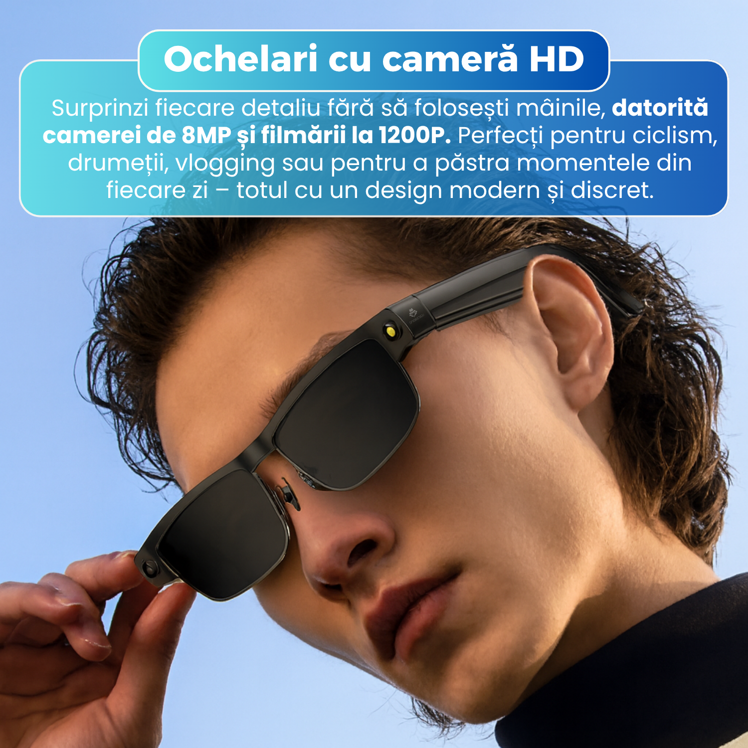 Ochelarii integreaza o camera performanta de 8 megapixeli, capabila sa surprinda imagini clare, luminoase si detaliate fara sa fie nevoie sa folosesti mainile. Datorita senzorului optimizat si procesarii inteligente, fiecare cadru este redat cu o precizie ridicata, iar obiectele raman bine conturate chiar si atunci cand esti in miscare. Functia de filmare la 1200P asigura o calitate video superioara, perfecta pentru captarea momentelor dinamice, a peisajelor sau a situatiilor de zi cu zi. Culorile sunt naturale, contrastul este echilibrat, iar imaginea ramane stabila, indiferent daca mergi, alergi sau pedalezi. Este alegerea ideala pentru drumetii, ciclism, vacante, evenimente sau vlogging, permitandu-ti sa documentezi experientele cu unghiul exact pe care il vezi tu, fara a purta camere voluminoase sau suporturi suplimentare.