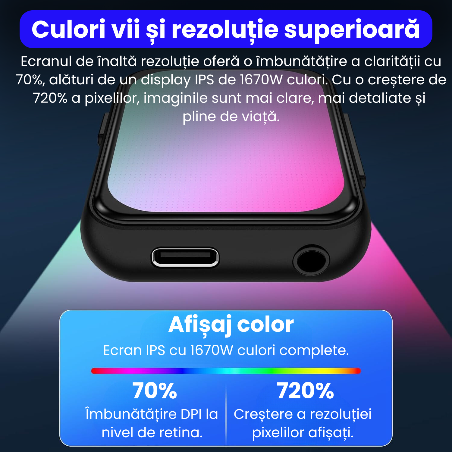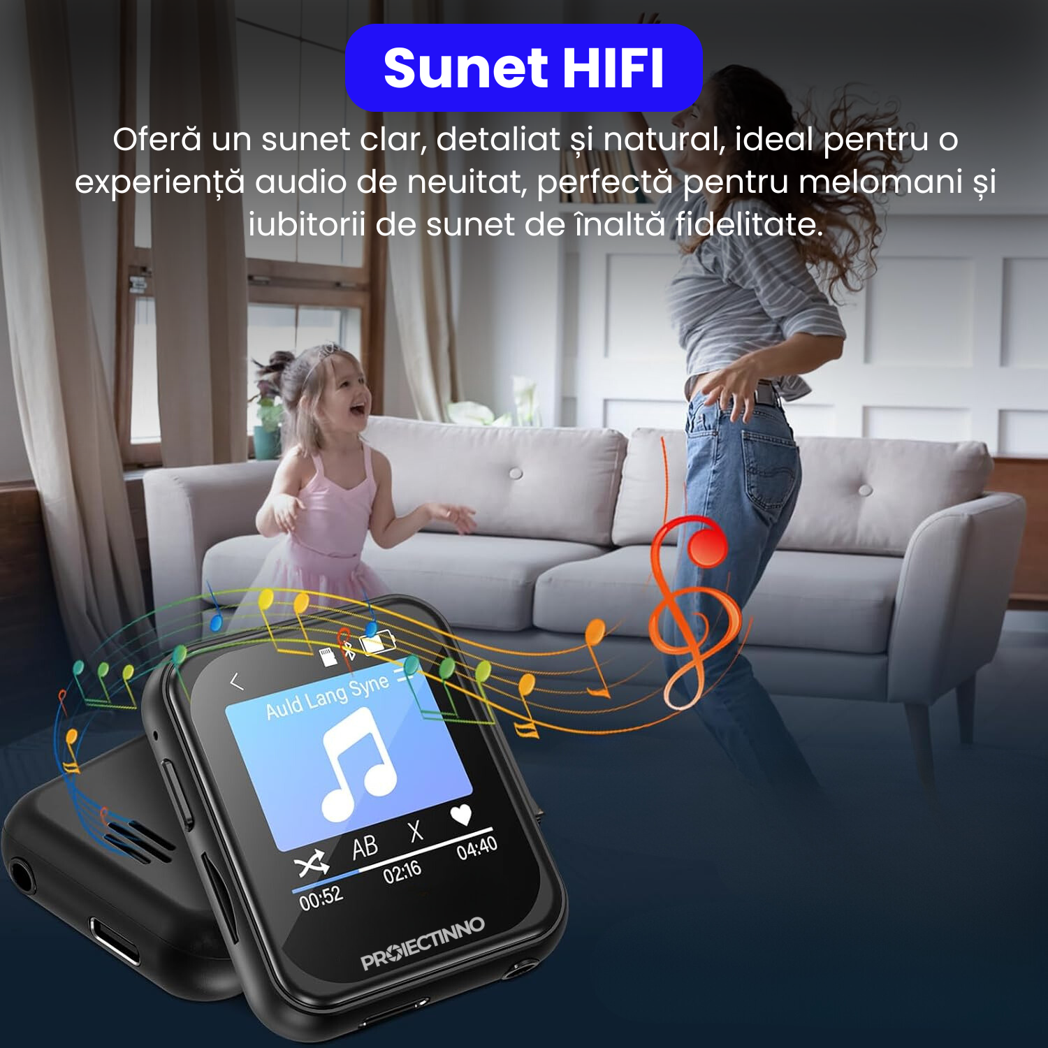 Sunet HIFI de inalta calitate: Playerul este echipat cu tehnologie de sunet HIFI, ceea ce inseamna ca vei experimenta o calitate audio superioara, perfecta pentru ascultarea muzicii tale preferate cu detalii clare.