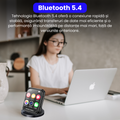 Tehnologia Bluetooth 5.4 asigura o conexiune rapida si stabila, imbunatatind semnificativ performanta fata de versiunile anterioare. Cu o distanta de transfer mai mare si o viteza de conectare mai rapida, poti transmite muzica, fisierele sau datele preferate fara intreruperi sau intarzieri. Indiferent de dispozitivele la care te conectezi, Bluetooth 5.4 iti garanteaza o experienta fara probleme, permitandu-ti sa te bucuri de o conexiune continua si de o calitate a sunetului superioara. Fie ca asculti muzica, vizionezi videoclipuri sau transferi fisiere, Bluetooth 5.4 asigura o performanta imbunatatita, astfel incat sa te poti concentra pe ce este mai important.