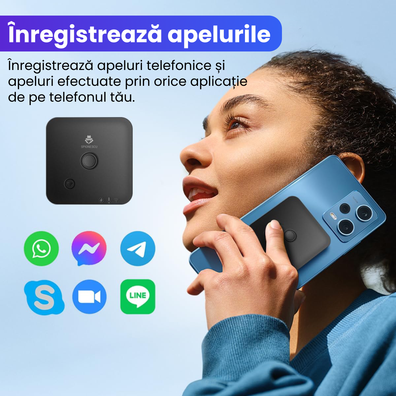 Beneficiaza de puterea tehnologica a dispozitivului nostru, care lucreaza perfect in combinatie cu o aplicatie puternica, asigurandu-ti o experienta de utilizare optima. Acest dispozitiv permite inregistrarea apelurilor telefonice direct de pe telefonul tau, precum si a apelurilor din orice aplicatie de comunicare, asigurandu-se ca niciun detaliu important nu este pierdut. Pentru protectia fisierelor tale, dispozitivul ofera optiuni avansate de securitate, garantand confidentialitatea si integritatea datelor. In plus, poti partaja cu usurinta inregistrarile audio prin intermediul aplicatiei, facilitand colaborarea si distribuirea informatiilor. Designul sau inovator include un sistem de prindere cu magneti, care permite atasarea rapida si sigura a dispozitivului intr-o varietate de locatii, oferindu-ti flexibilitate si comoditate in utilizare. Indiferent de nevoile tale, acest dispozitiv combina tehnologia avansata cu un design practic pentru a-ti oferi solutia ideala in gestionarea si protejarea informatiilor tale.