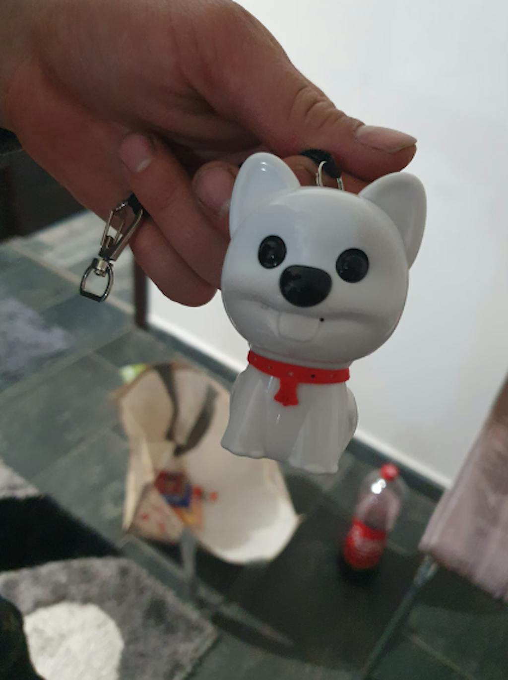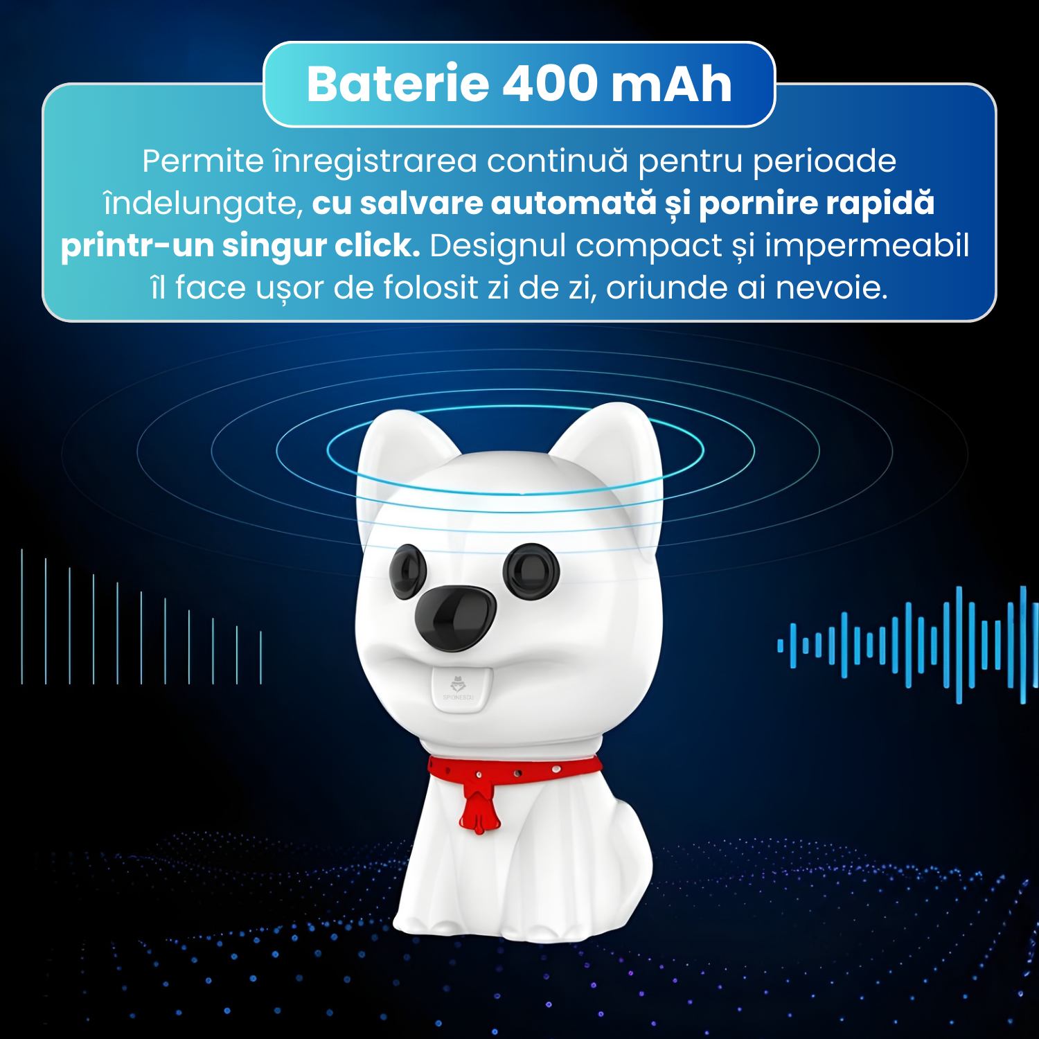 Mini reportofon spion tip breloc, GL-16, design caine, activare vocala, inregistrare silentioasa, autonomie pana la 70 ore, rezistent la apa si praf, MP3 player, memorie interna, alb
