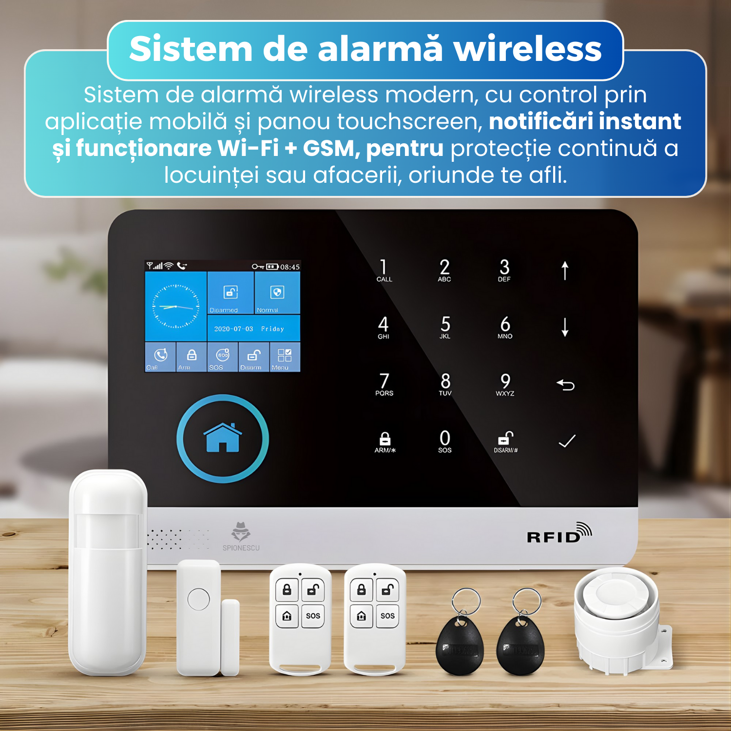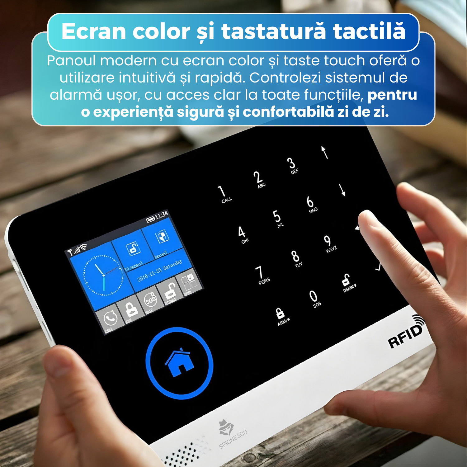 Protejeaza-ti locuinta sau afacerea cu un sistem de alarma wireless modern, conceput pentru siguranta completa si control total de la distanta. Acest sistem inteligent combina conectivitatea WiFi si GSM, notificari instant, apeluri telefonice si control prin aplicatie mobila, oferindu-ti liniste indiferent unde te afli. Instalarea este simpla, fara cabluri inutile, iar interfata cu ecran color touchscreen asigura o utilizare intuitiva pentru intreaga familie.