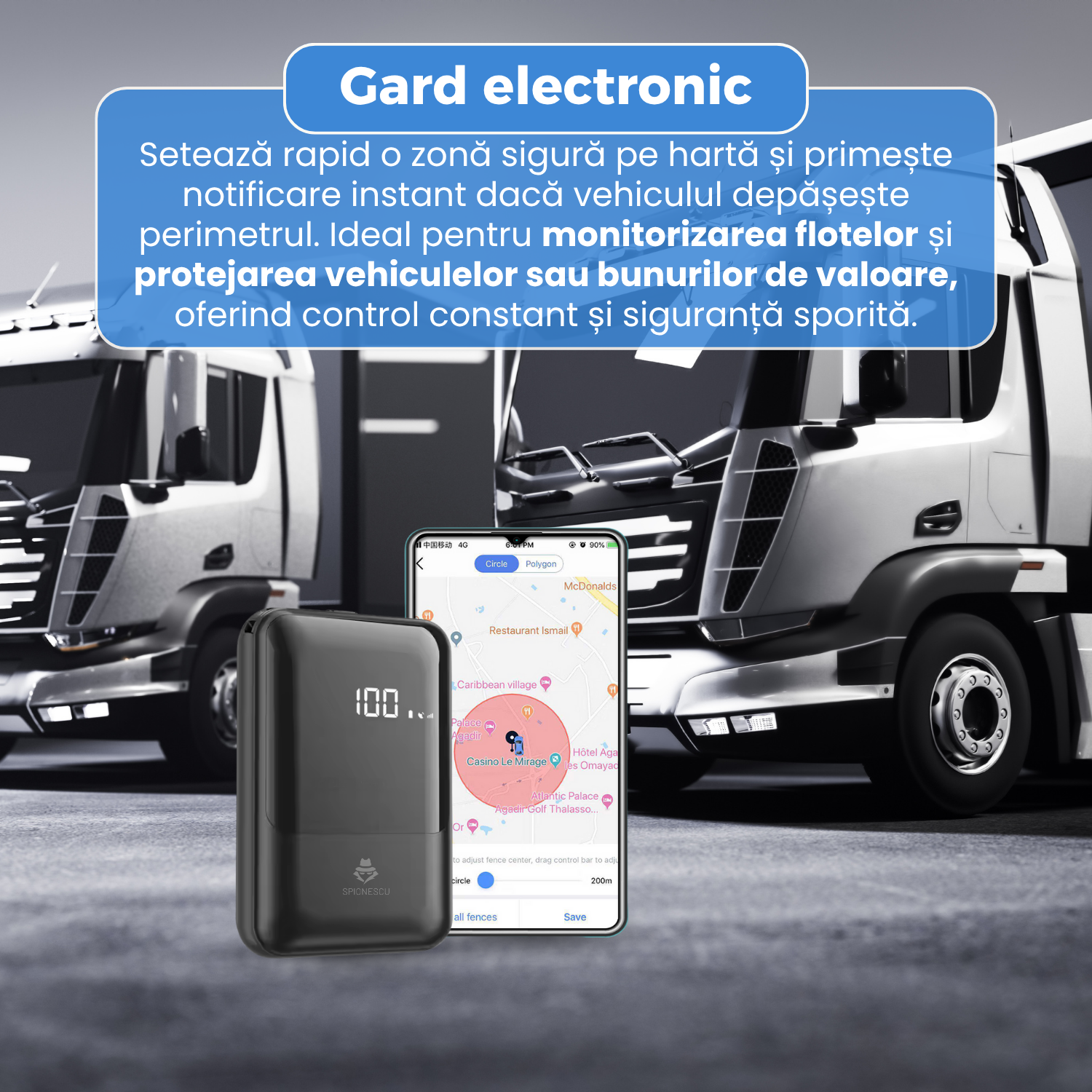 Functia de gard electronic iti permite sa stabilesti un perimetru virtual direct pe harta. Daca vehiculul paraseste aceasta zona, primesti instant o notificare prin aplicatie. Este solutia ideala pentru supravegherea masinilor de serviciu, vehiculelor personale sau transporturilor de valoare, oferind siguranta si control complet.