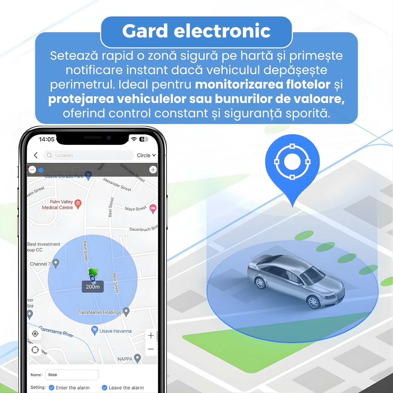 Functii: redare traseu, gard electronic, alerte inteligente, economisire energie